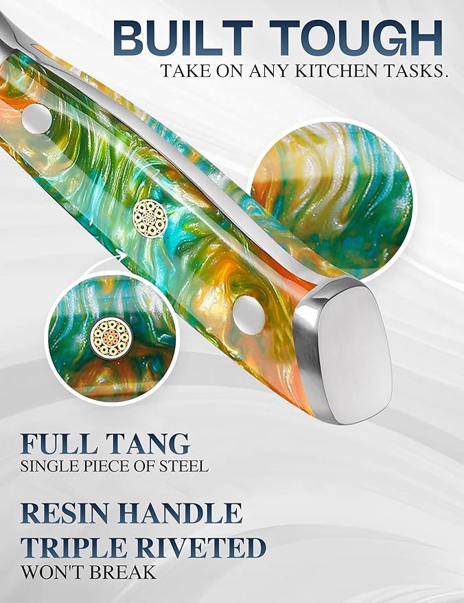 • 【Perfect Gorgeous Design】Please note, each resin colorful handle is unique so each is individual and unique although they may not perfectly match the one in the photo. But, exquisite handle is using custom design and solid crafting. All’s that makes the purchase worth it.