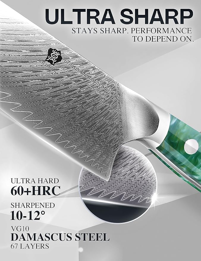 • Ultra Sharp Blade】With the 10Cr core, the blade is incredibly strong and stable. The razor sharp edge could be kept for months of frequent daily use. With outstanding sharpness, you could cutting, chopping, slicing, and mincing for processing chicken, beef, vegetables, fruits, fish, and various kitchen foods.