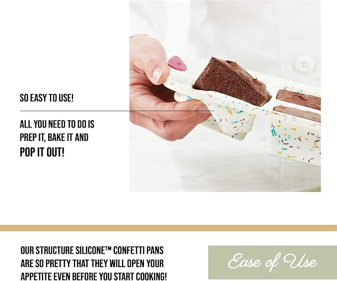 • EFFORTLESS BROWNING & EASY RELEASE – Flexible, non-stick silicone delivers perfect browning while ensuring brownies, cakes, and desserts release effortlessly. Lightly grease and cool for 5–10 minutes for perfectly shaped bakes, no paper liners required. Ideal for intricate baking molds, decorative brownies, or shaped treats.
