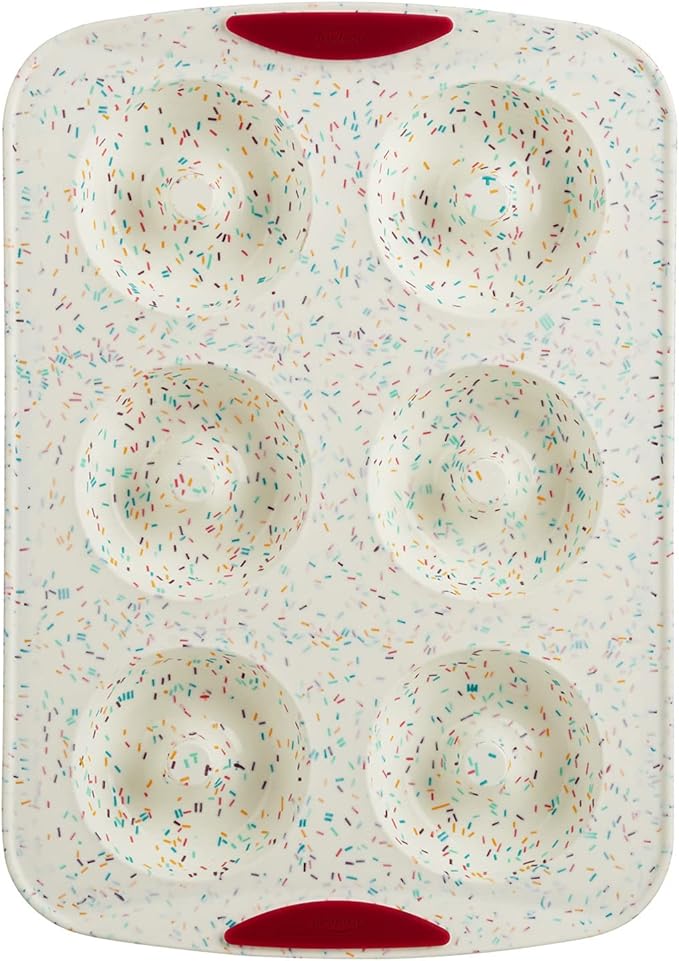 Trudeau Jumbo Donut Pan – Nonstick 6 Cavity Mold, White Confetti/Fuchsia – Silicone Baking Pan for Homemade Donuts, Muffins, Cakes, Bagels, Pastries & Baked Treats – Dishwasher & Oven Safe