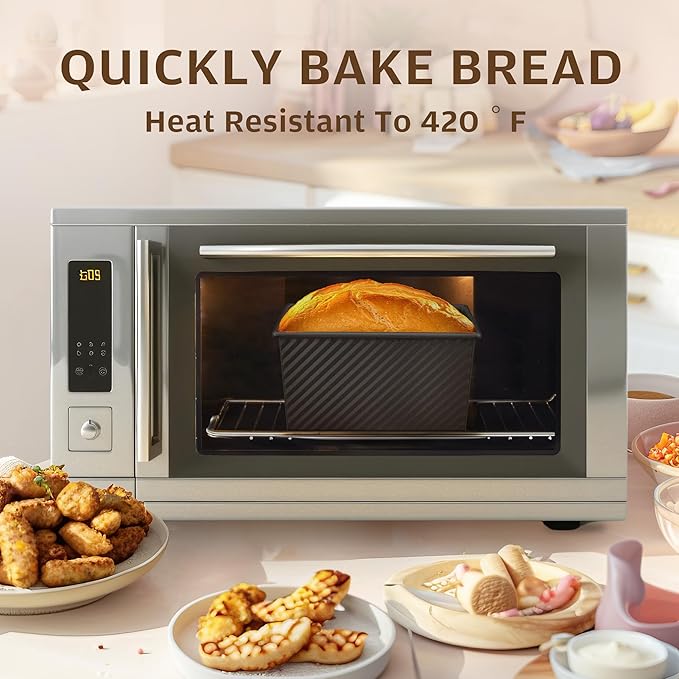 • Carbon Steel Bread Pan: Our Pullman loaf pans are manufactured with heavy, reliable, provides durability and fast, food-rated gauge carbon steel. Food-grade Silicone coating, non-Teflon release in high temperature,so you can focus on getting delicious things cooking!