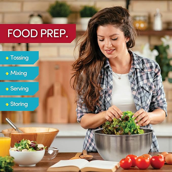 Belwares Mixing Bowls with Lids Set - Nesting Bowls with Airtight Lids + Graters - Stainless Steel Non-Slip Mixing Bowl for Baking, Food Storage and Prepping (Red, 5-Piece Set)