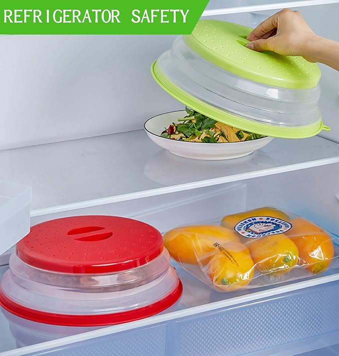 • Easy to Storage:Expands to 3.6 inches and collapses to 1inch ,It's tall enough to cover most plates of food,and shallow bowls,It folds pretty flat,so it can be easily stored or hung somewhere other than in your microwave
