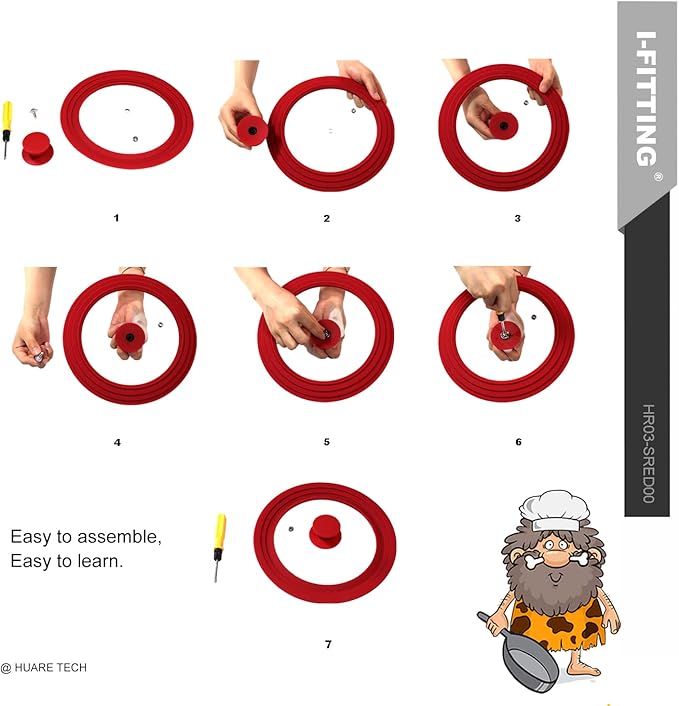 Universal Lid for Pot,Pan,Skillet Fits 6.5",7",8" Cookware Silicon lid Dishwasher Safe, Replacement Lid Vented Tempered Glass with Heat Resistant Silicone Rim By HR Huare Technology, Red,1 Pack