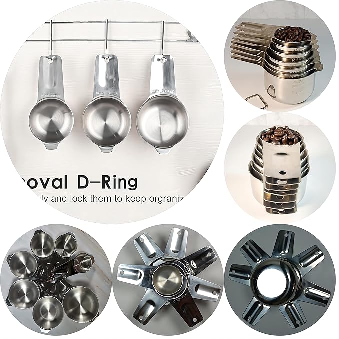• ✱✱ Every metal measuring cups and spoons set: this set has the accurate measurements size in US and Metric engraved on the handle clearly, what will help you reduce any measuring errors for cooking or baking! for dry measuring cups and liquid measuring cups in kitchen!