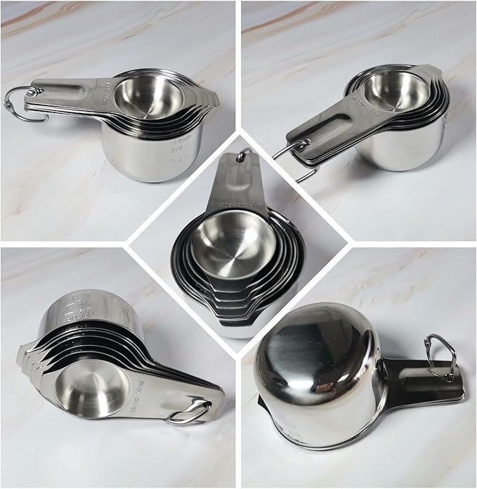 Measuring Cups Set, 18/8 Stainless Steel Measuring Cups Set of 7 for Drying & Liquid, Metric & US Nesting Measuring Tools for Kitchen & Baking