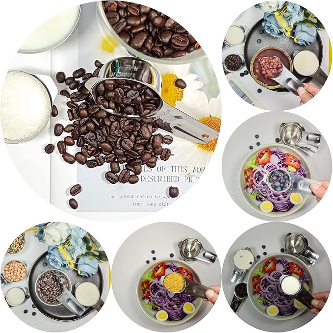 • ✱✱ Every metal measuring cups set <br> in this set has the accurate measurements size in US and Metric engraved on the handle clearly,<br> what will help you reduce any measuring errors for cooking or baking!
