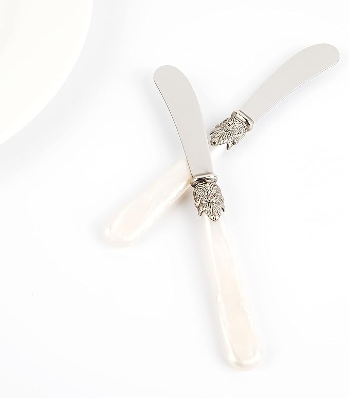 REVERIE Collection 4-piece Stainless Steel Butter Spreader Cheese Knife, Giftable Butter Knives set, Bread Knife set (White Handle)