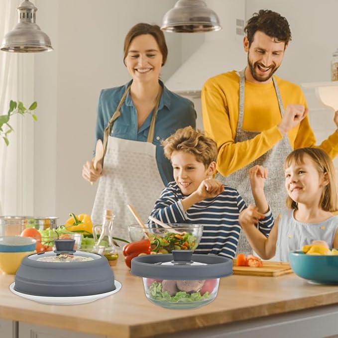 Microwave Splatter Cover Glass Splatter Guard Lid with Collapsible Silicone for Food Plate Cover 8.5 inch Grey