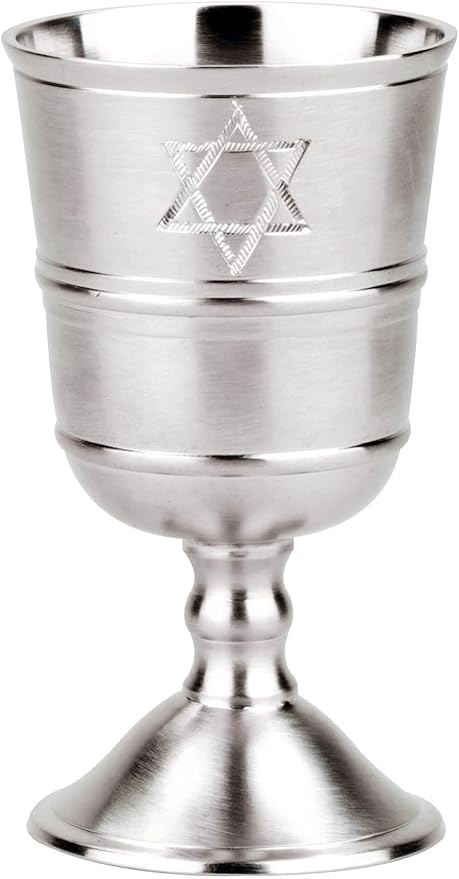 Zion Judaica Kiddush Cup Wine Goblet with Engraved Star of David Pewter Plated 4.5" Tall Holds 5 oz for Shabbat, Passover use