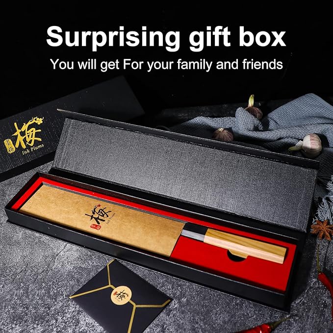 • ✔【Hand-forged Black Knife Surface】The Japanese-style knife surface design is tempered and refined to remove impurities in the steel, making the kitchen knife sharper and more durable, while leaving beautiful "marks beaten by the years" on the surface of the knife.