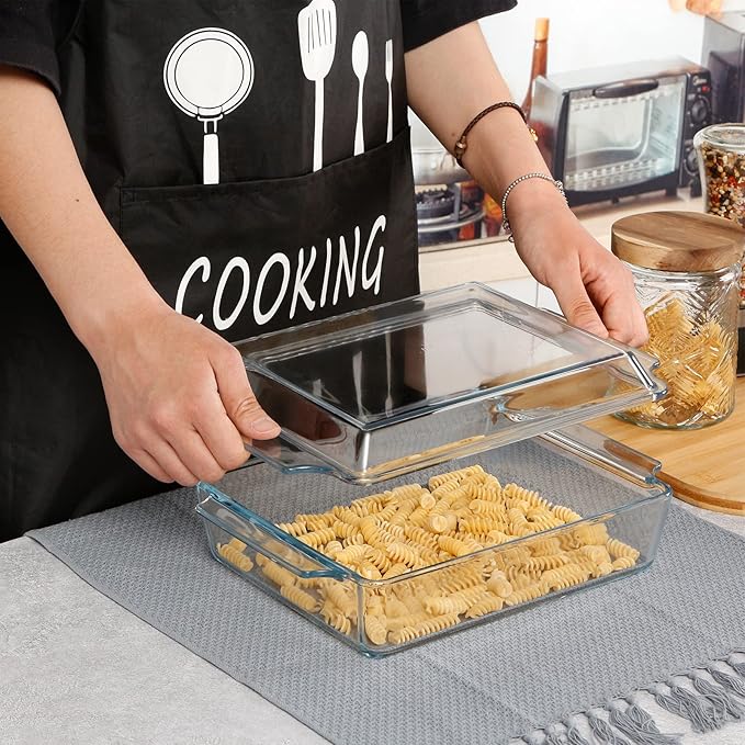 NUTRIUPS 8 x 9.5 Inches Rectangular Glass Casserole Dish With Glass Lid 2 Quart Glass Bakeware Glass Microwave Casserole Dish Glass Baking Dish with Lid