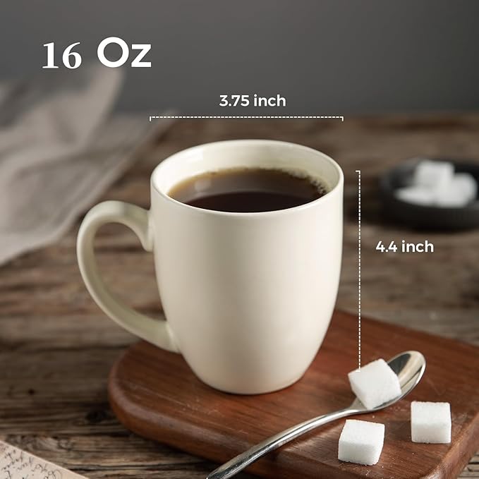 - LARGE SIZE & CONVENIENT SET: With a capacity of 16oz, these mugs are the perfect size for everyday use at home or in the office. The set of 6 mugs is convenient for serving guests or for use throughout the day. These mugs are versatile and can be used for a variety of beverages such as coffee, tea, soup, milk, latte, cappuccinos, hot chocolate, cocoa, and more.