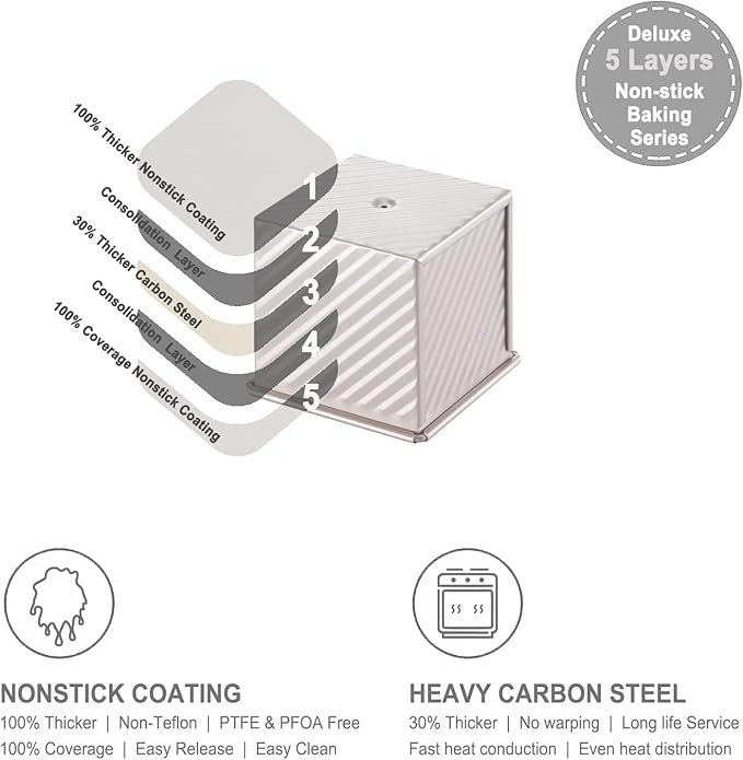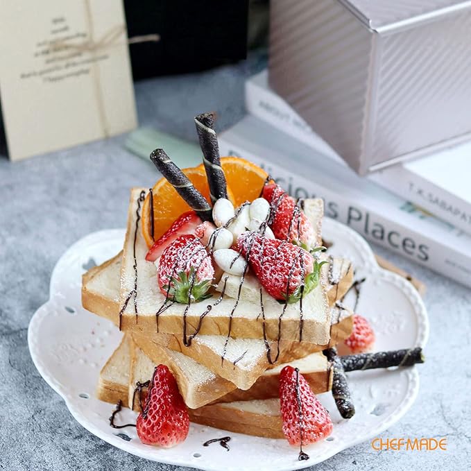 CHEFMADE Square Pullman Loaf Pan with Lid, 1Lb Dough Capacity Non-Stick Rectangle Corrugated Toast Box for Oven Baking 5.7" x 5.7"x 5.2"(Champagne Gold)