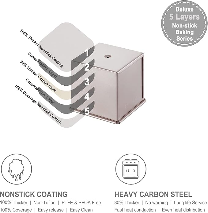 CHEFMADE Square Pullman Loaf Pan with Lid, 1Lb Dough Capacity Non-Stick Rectangle Flat Toast Box for Oven Baking 5.7" x 5.7"x 5.2"(Champagne Gold)