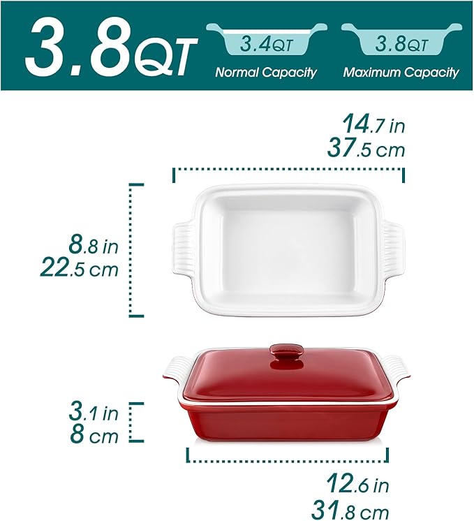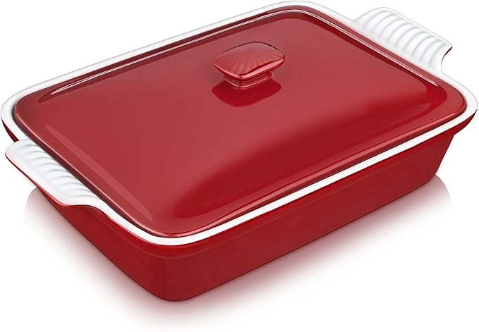• 【Great Gift Option & Service】 Red baking dishes for oven with lids are perfect as gift for your friends and family on Housewarming, Birthday, Wedding party, Christmas and New Year's Day etc.