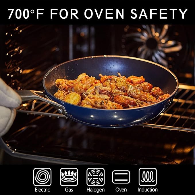 • 700°F for oven safety: No PFOA design at high temperatures, avoid breathing in tiny chemicals when you cook your favorite dishes