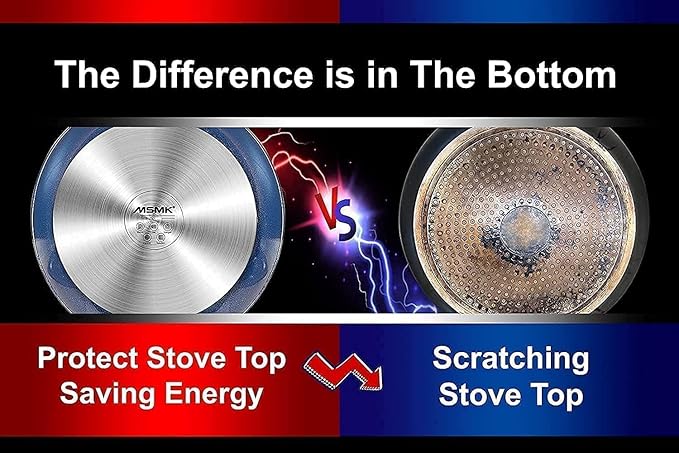 • Easy to Clean Design: Limestone nonstick of the frying pan makes scraping off burnt-on food much easier. MSMK non-stick pans can usually be cleaned just by wiping them using a paper towel, you are saving a lot of water