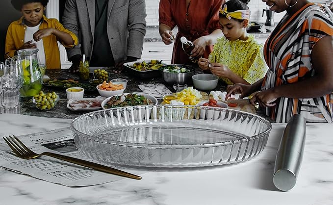• Glass pie pans are perfect for dishes like roasted vegetables, roasts, quiches, pie toast, blueberry pie, apple pie, pumpkin pie and pecan pie and are the perfect size, depth and width to eat as a single dish in Italy noodles, salads, or anything messy. It also serves as a great plate and can also be used to heat food.