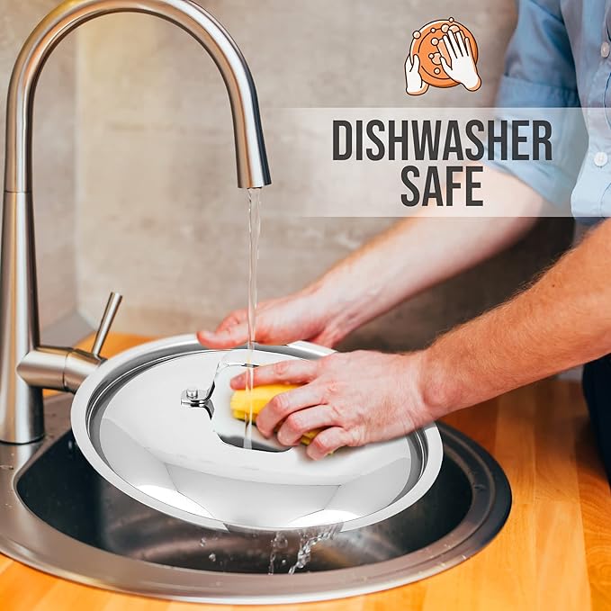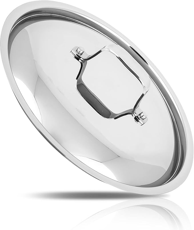 • FITS 10.10'' POT: This stainless steel lid fits pots with a 10.10''-inches inner size including the 3.4 qt saute pan, steamer insert, and 8 qt stockpot. It effectively distributes & retains heat for fast and even cooking all around