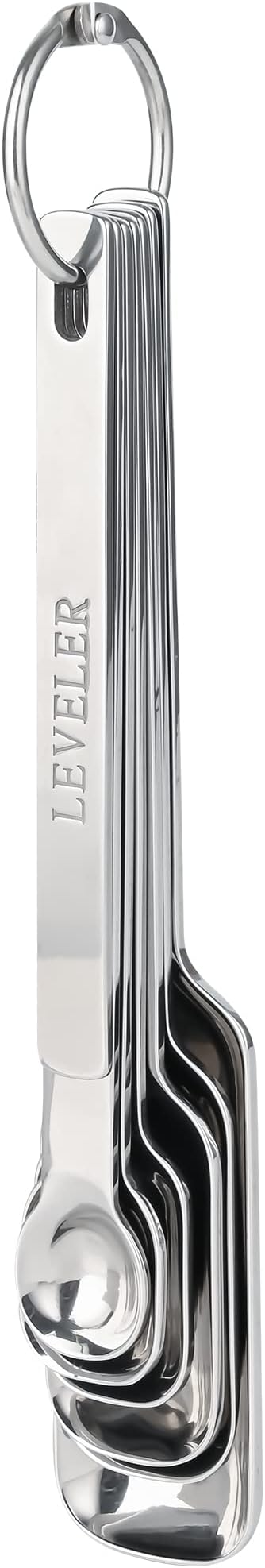 • Complete measuring cups and spoons set of 12: 5 stainless steel measuring cups: 1/8 cup (30 ml), 1/4 cup (60 ml), 1/3 cup (80 ml), 1/2 cup (125 ml), 1 cup (250 ml) ; <br>6 stainless steel measuring spoons: 1/8 tsp (0.6 ml), 1/4 tsp (1.25 ml), 1/2 tsp (2.5 ml), 1 tsp (5 ml),1/2 tbsp (7.5 ml),1 tbsp (15 ml); 1 Leveler