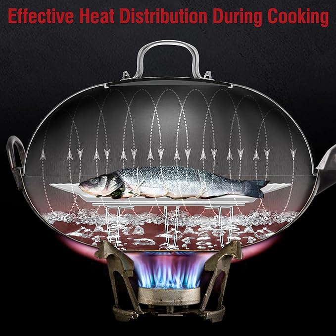 • Maximize your wok's functionality: Our stainless steel 12.8-inch lid cover traps and distributes heat evenly for more efficient cooking. These wok utensils concentrate all the flavors, so your food tastes better.