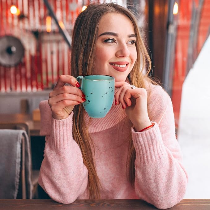 - β γπππππππππππ πππ πππ πππππππππ ππππγversatile for coffee, hot drinks, tea, cocoa, milk, etc. With a circle pattern design and vibrant turquoise tone, these mugs are a bright decoration for home, restaurant, office, party, and holidays. Larger than ordinary coffee mugs, they hold up to 14 ounces. Perfect for coffee lovers, the set includes 6 porcelain mugs suitable for home use. Elevate your drinkware with Esfour.
