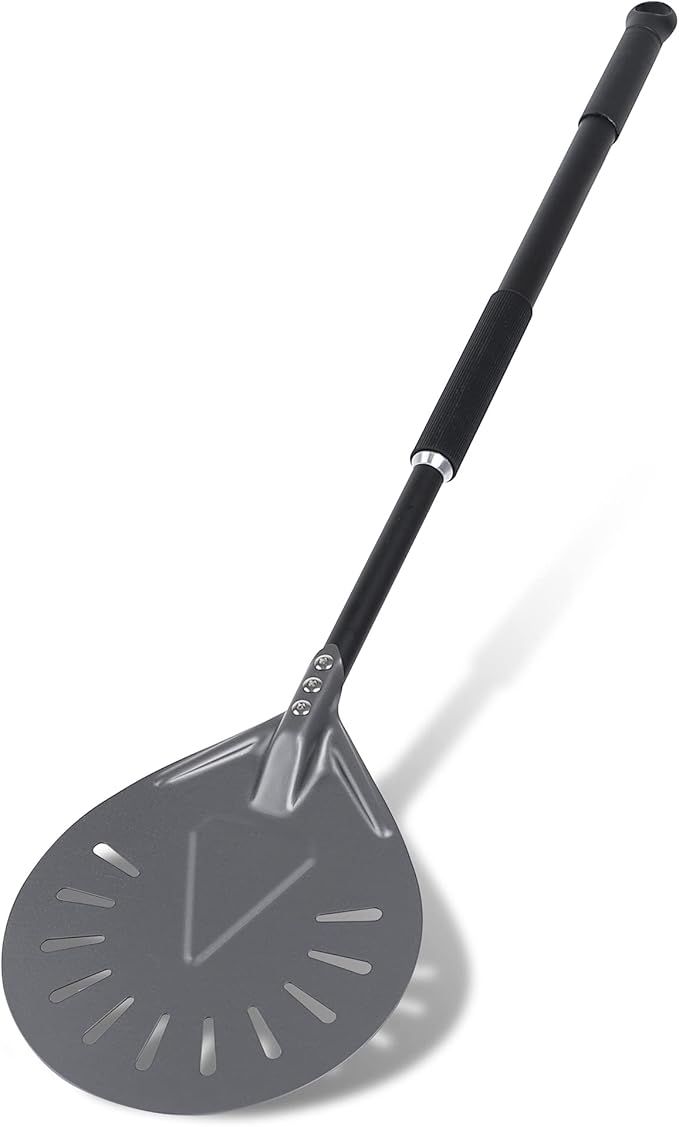 Pizza Turning Peel - 8 Inch Aluminum Perforated Turner With 32 Inch Long Handle, Lightweight Metal Peel for Outdoor Oven Accessories