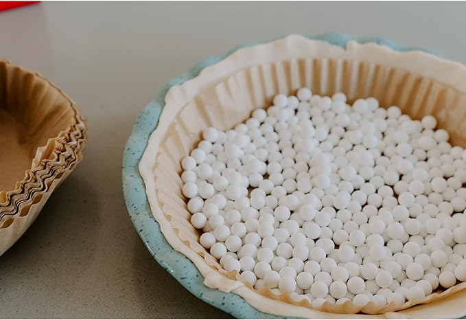 • NO TEARING NEEDED: Typical parchment or butcher paper doesn't fit a pie dish well, we fixed that. Baking unbaked pie crusts has never been easier, drop the weights in and simply lift to discard.