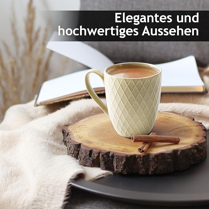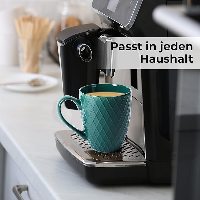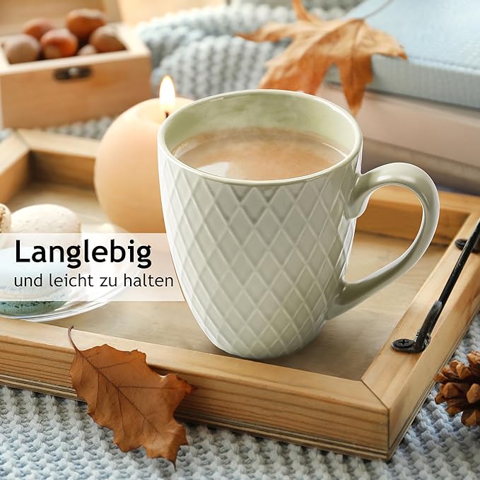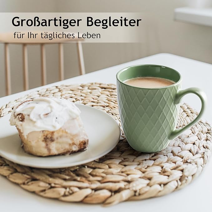 MIAMIO - Coffee Mugs set of 6 / Coffee Cups - 6 x 14 Oz Ceramic Mugs - Large Coffee Mugs - Microwave & Dishwasher safe - Palmanova Collection (Green)