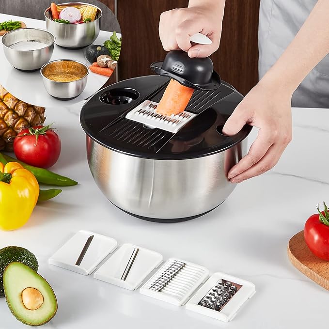 • 🔥[Multifunctional &Easy Clean]-This stainless bowls set is ideal for preparing food, making and mixing salads, mixing dough, baking cooking and food storage.Simple to clean by hand and dishwasher safe. Please hand-wash the lids to minimize exposure to heat.
