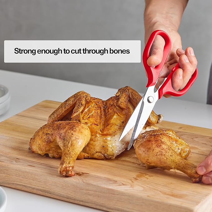• Ultimate Kitchen Tool: Misen's professional-grade red scissors are not just any regular tool - they redefine versatility in the kitchen landscape. They can tackle any job in the kitchen or around the house. Easily debone an entire chicken, snip fresh herbs, slice up a pizza, or even just use them to open up your Amazon packages. There's a million uses for these around the kitchen and house.