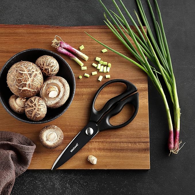 • CRAFTSMANSHIP – Crafted from high carbon German stainless steel, this kitchen knife set is made to last for years. The ergonomically designed handle provides a comfortable grip, no more loose or fallen handle. Exclusive taper grind edge technology provides optimum sharpness for precise cutting and is easy to re-sharpen. The knives set is lightweight and well-balanced, providing effortless cutting. The attractive appearance and color of the set fits your kitchen decor well.