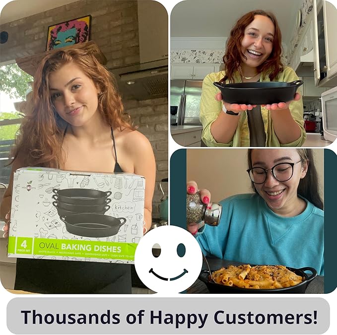 • Thoughtful Housewarming Gift – Everyone can use reusable cooking and baking pans in their kitchen which makes our 8” x 5” individual oval baking dishes perfect as holiday, Christmas, or even housewarming gifts to friends, family, or new neighbors