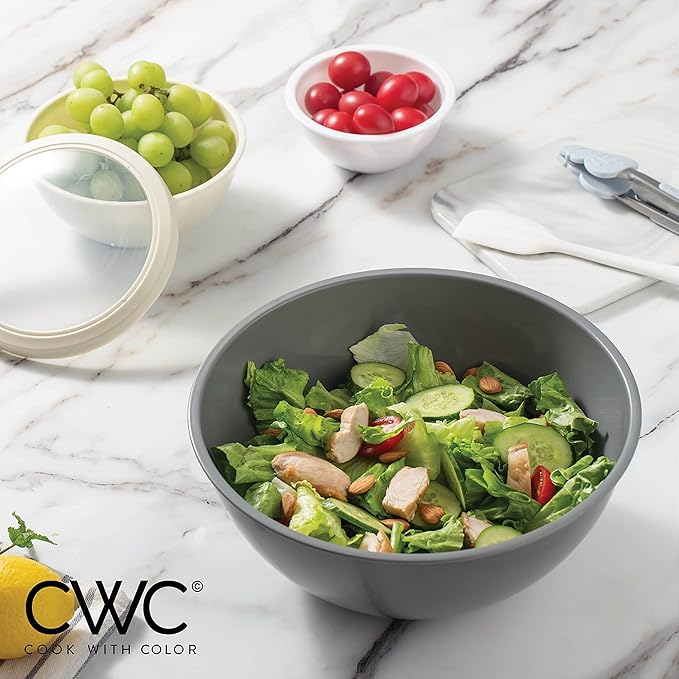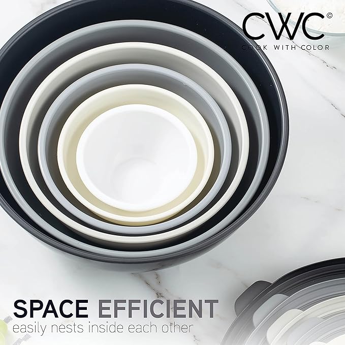 COOK WITH COLOR Mixing Bowls with TPR Lids - 12 Piece Plastic Nesting Set includes 6 Prep and Lids, Microwave Safe Bowl (Black Ombre)