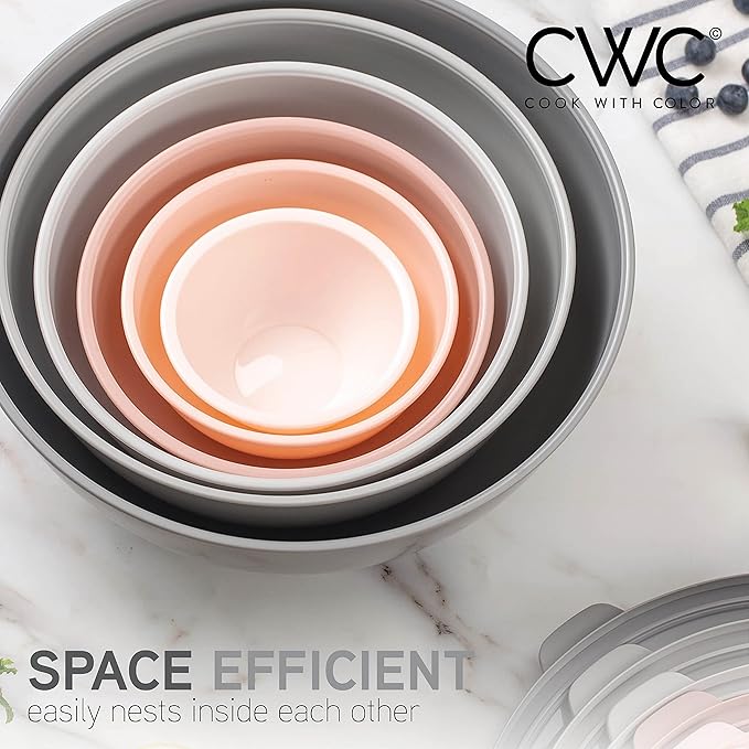 COOK WITH COLOR Mixing Bowls with TPR Lids - 12 Piece Plastic Nesting Bowls Set includes 6 Prep Bowls and 6 Lids, Microwave Safe Mixing Bowl Set (Pink Ombre)