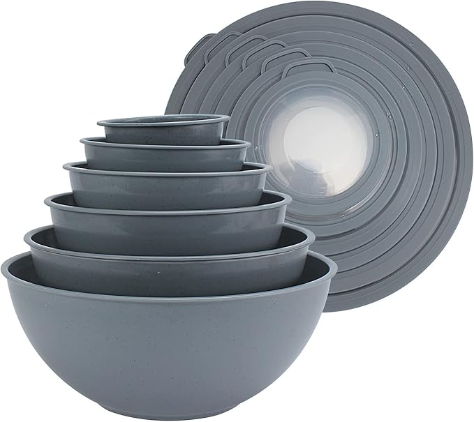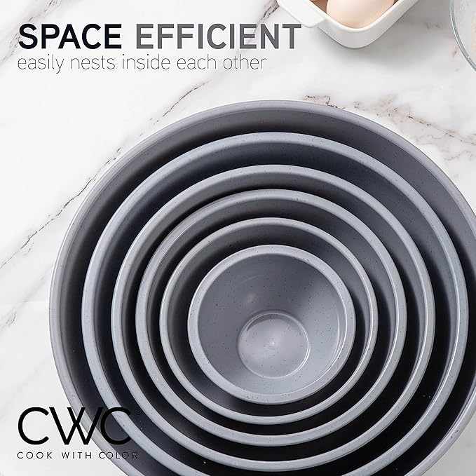 COOK WITH COLOR Mixing Bowls with TPR Lids - 12 Piece Plastic Nesting Bowls Set includes 6 Prep Bowls and 6 Lids, Microwave Safe Mixing Bowl Set (Speckled Charcoal)