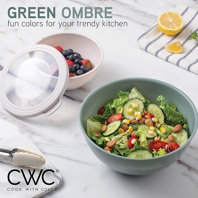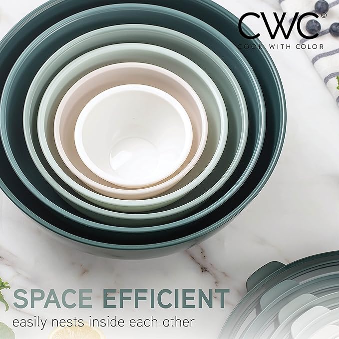 COOK WITH COLOR Nesting Mixing Bowls - 12 Piece Plastic Bowl Set with Lids, Microwave Safe (Green)