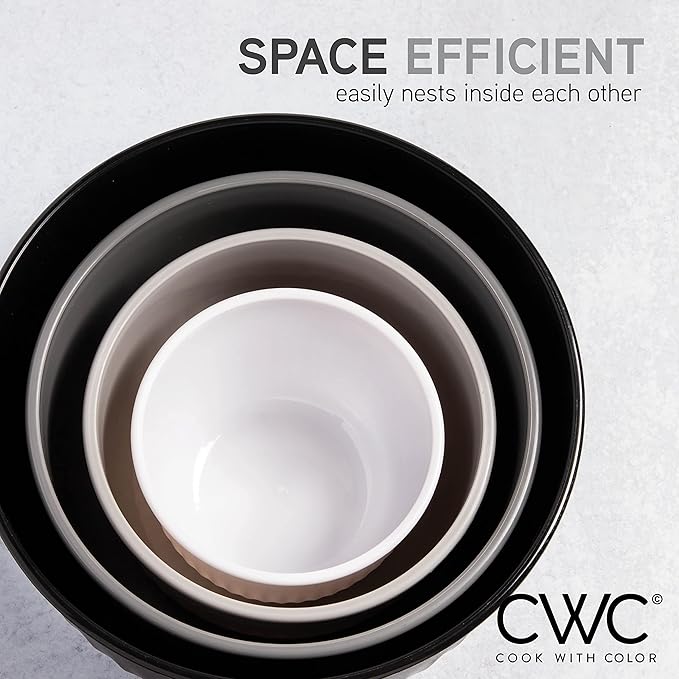 • Cook with Color 4 piece plastic mixing bowl set - non slip bowls with lids; easy to clean, sturdy mixing bowls.