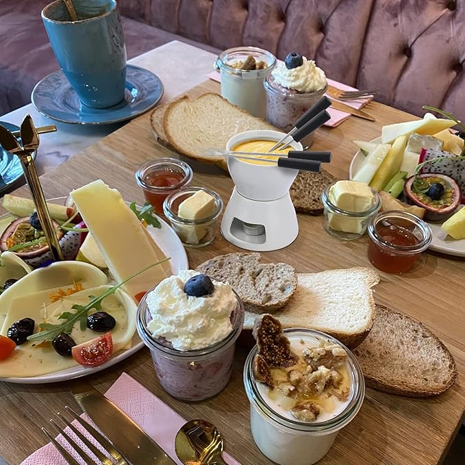 • šŸ²ADAPTABLE TO MANY OCCASIONS - This fondue set is perfect for picnics, afternoon tea, beaches, gatherings, buffets and party tables. Make delicious dips and enjoy with your favorite fruits, vegetables, cookies, treats, marshmallows, mini cupcakes and more.This fondue sets is your go-to for showcasing any type of food, other desserts or appetizers.