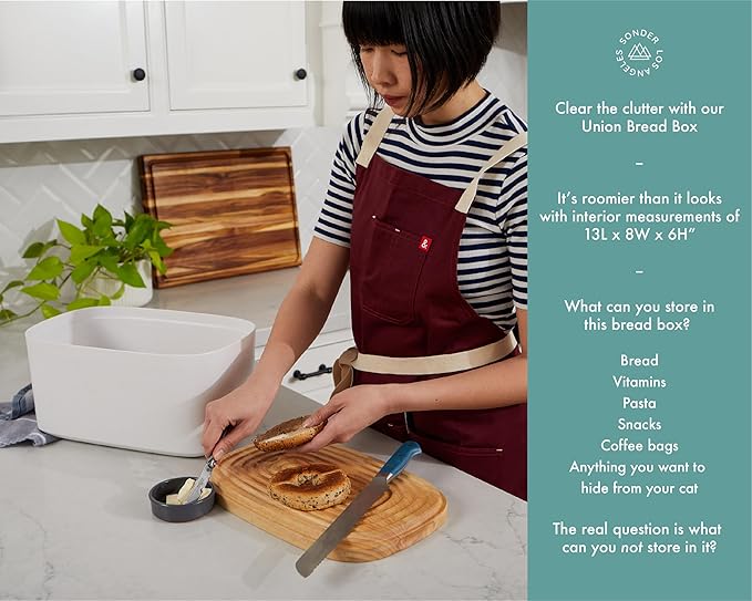 Sonder Los Angeles, Modern Bamboo Fiber and Recycled Plastic Bread Box (White) for Kitchen Countertop with Reversible Cutting Board Lid, Homemade Bread Bin Storage Container 14.25 x 9.25 x 7 in