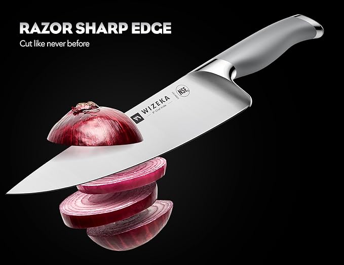 WIZEKA Kitchen Knife Set with Block: 15PCS Easy-Care Knife Block Set with Sharpener, One-Piece German Stainless Steel Kitchen Knives, Silver Wings Series