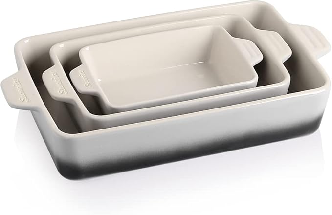 - Safe and Durable: Made of LEAD-FREE pro-grade ceramic,our baking pans are are durable and long-lasting. They are safe to use in dishwashers, refrigerators, microwaves, and ovens, ensuring convenience and peace of mind in your kitchen.