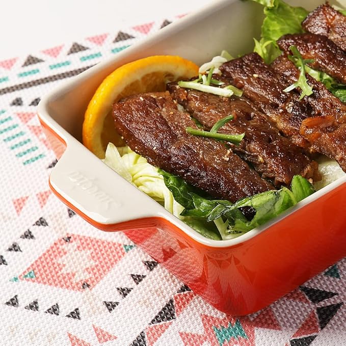 • 【Easy to Clean】Thick baking dish, heated evenly, with good insulation effect. Smooth glaze, easy to clean, you can wash it with soap or hot water, and dishwasher safe.