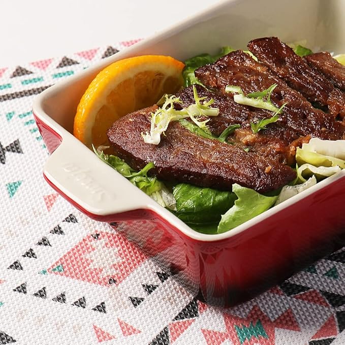 • 【Easy to Clean】Thick baking dish, heated evenly, with good insulation effect. Smooth glaze, easy to clean, you can wash it with soap or hot water, and dishwasher safe.
