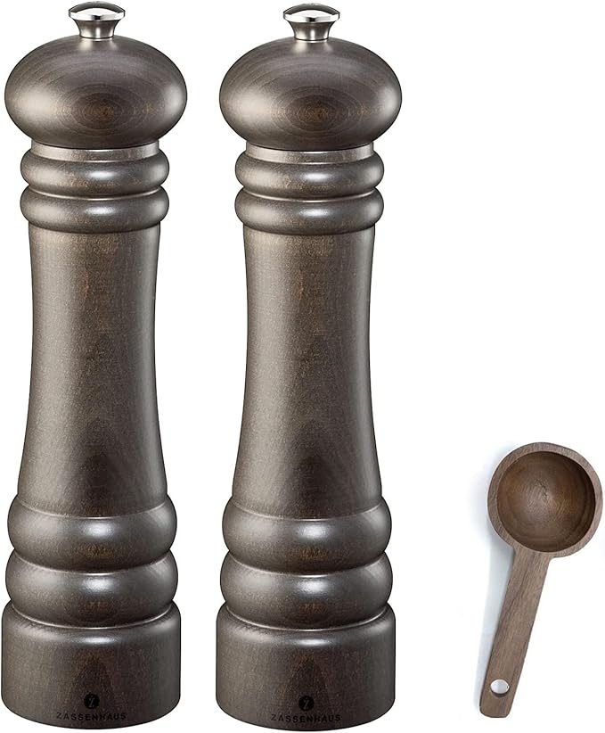 Zassenhaus Berlin Dark Stained Wood Salt & Pepper Mill Gift Set, Refillable Grinder, 9.4 Inches - With Wooden Spice Scoop