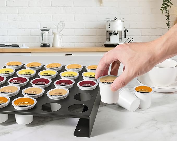 • [Easy to Use and Maintain]: Coffee pod organizer for k cups is designed for convenience and practicality. The coffee pod storage organizer features a user-friendly design that allows for easy insertion and removal of K Cups. Additionally, its high-quality metal material is waterproof and easy to clean, ensuring hassle-free maintenance and longevity