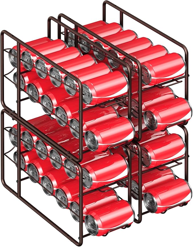 • Stackable Design: 4 pack soda can storage can holder more cans. You can used separately or stack up to multiple units according to the space of the kitchen cabinet or pantry, maximizing the use of limited space.