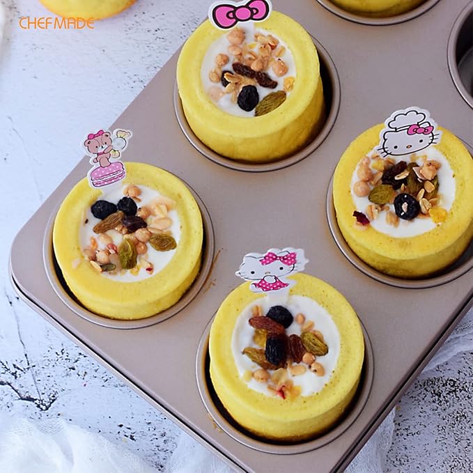 CHEFMADE Brownie Muffin Cake Pan,6-Cavity Non-Stick Bowl Pan Bakeware for Oven Baking (Champagne Gold)