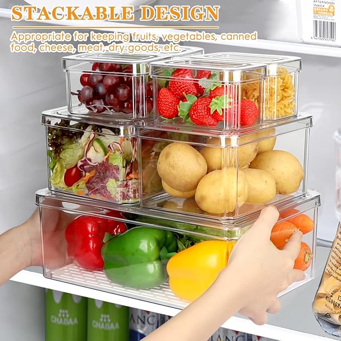 • 「Space-Saving Design」 Stackable design to help maximize your refrigerator storage space. The lids of fridge containers are not airtight and can effectively prevent dust and odors. Highly transparent design allowing you to easily find what you want & keep vegetables and fruits fresh